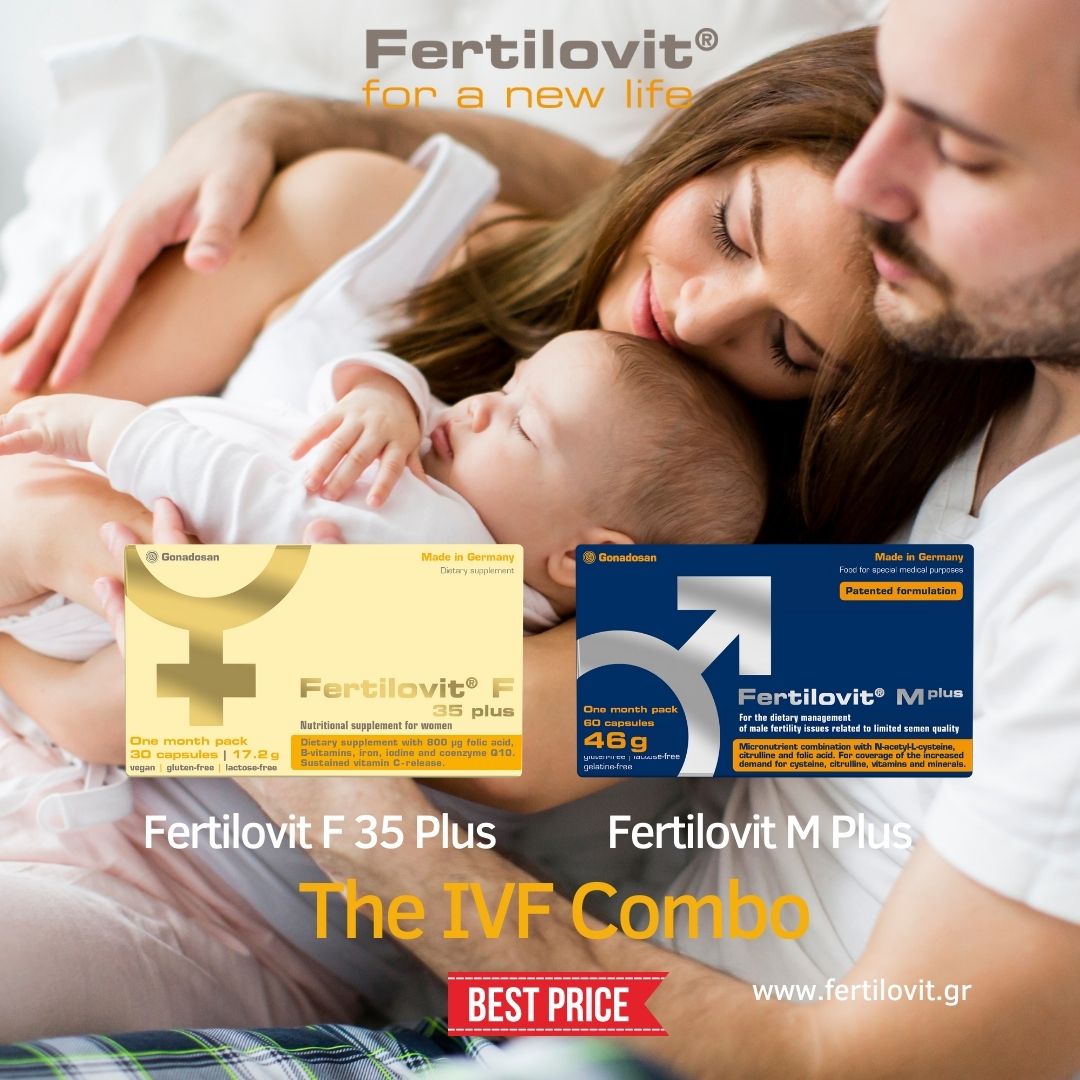 Το Fertilovit IVF Combo™ είναι ο ολοκληρωμένος συνδυασμός Fertilovit F35+ και Fertilovit MPlus, σχεδιασμένος για ζευγάρια που θέλουν να προετοιμάσουν με τον πιο έξυπνο και σύγχρονο τρόπο τη γονιμότητά τους πριν από την επόμενη προσπάθεια IVF.